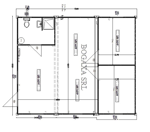 Vă propunem un ansamblu spațios de casă din 3 containere, cu o suprafață totală de 45mp (6 x 7,29 x 2,55m). Această locuință în container este ideală pentru locuit permanent, oferind o compartimentare optimă: living cu zonă de luat masa, două dormitoare separate și baie complet utilată, realizată pe o structură robustă de 3mm.